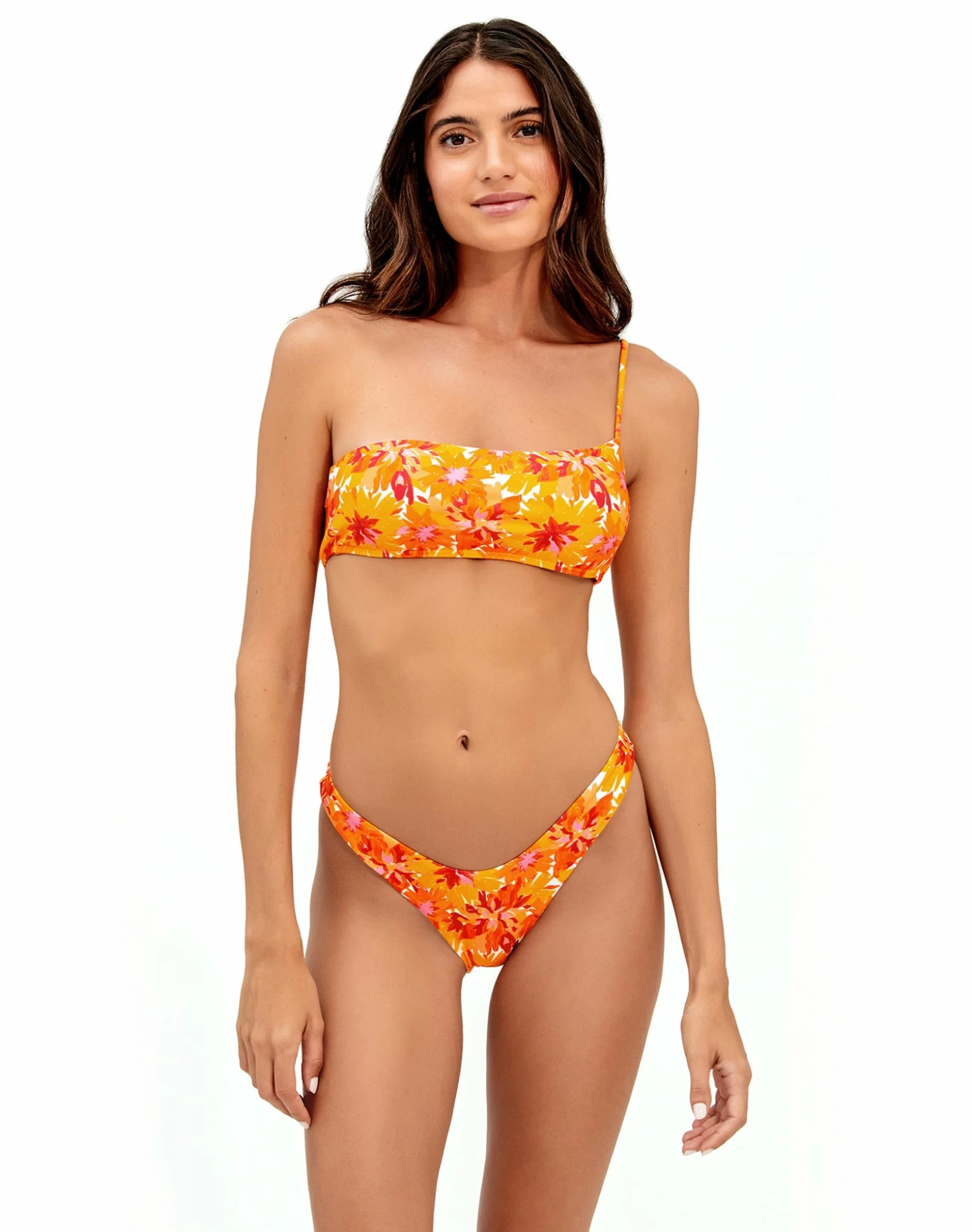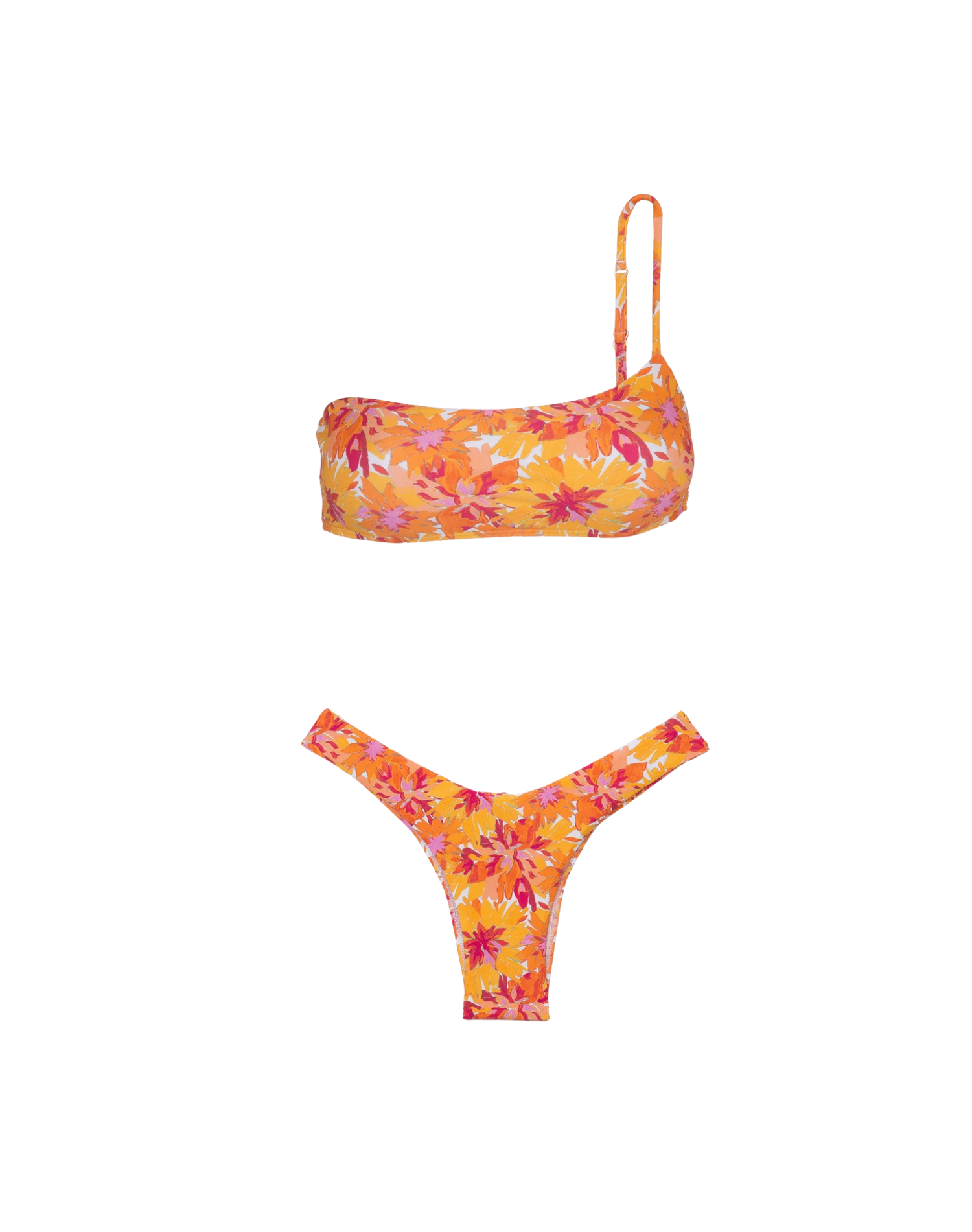 Full top with a single adjustable strap. In a vibrant yellow tone is a super feminine style and your next getaway companion