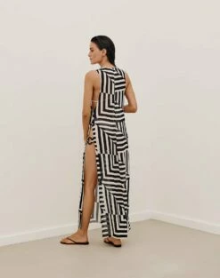 Take on whatever your getaway throws your way with the Catherine Short Dress, the perfect cover up for any aquatic getaway. This spectacular knit mini cover up features a stunning low back cut-out, long cuffed sleeves and gold detailing that tie together in a lightweight knit fabric that will be your ally in making a statement anywhere you go.