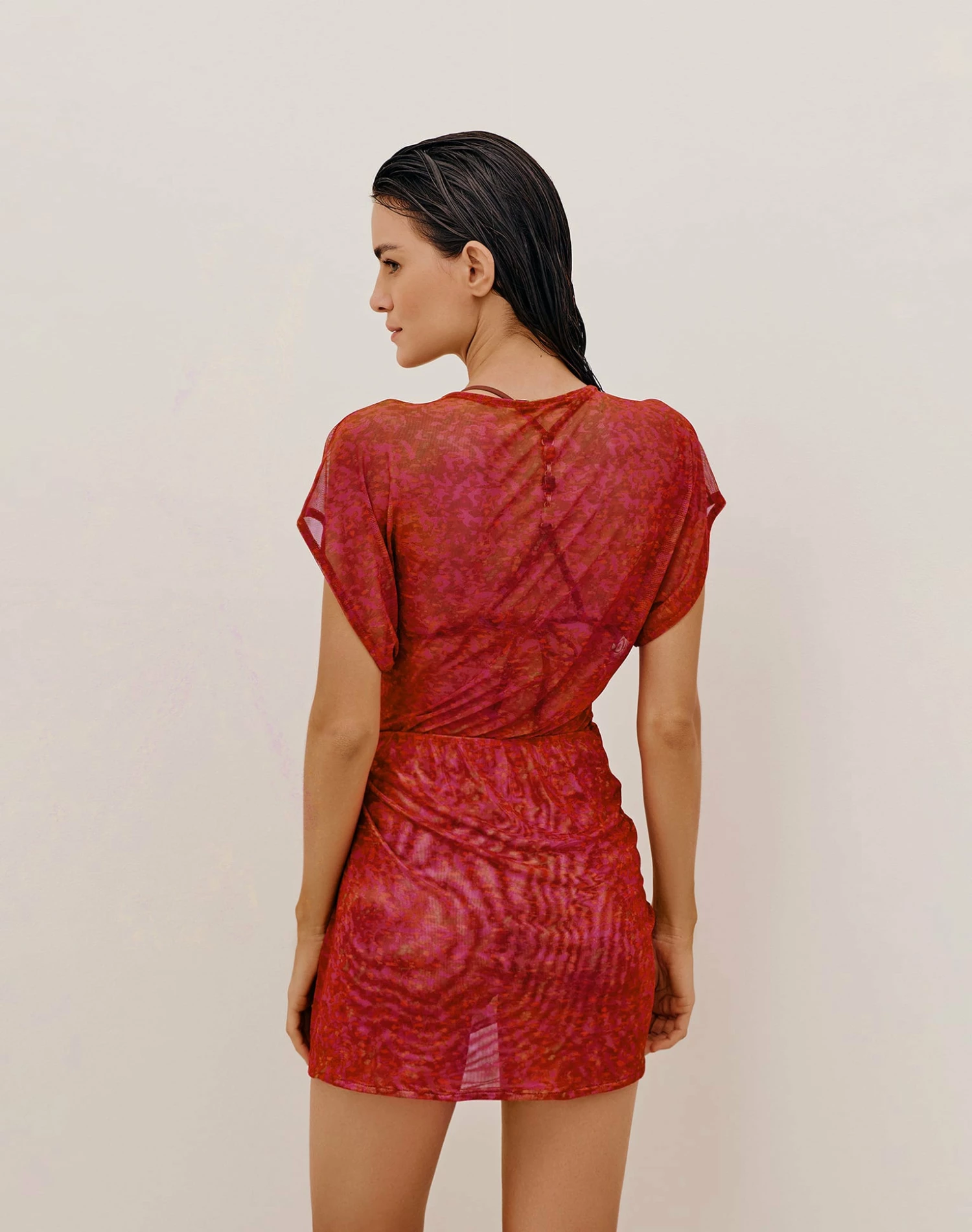 Cover your swimwear with this vibrant wrap-around dress for a glamorous resort outfit. This stylish cover up is crafted in a luscious, breathable, silky soft mesh fabric for a wrinkle-free put-together beachy style.