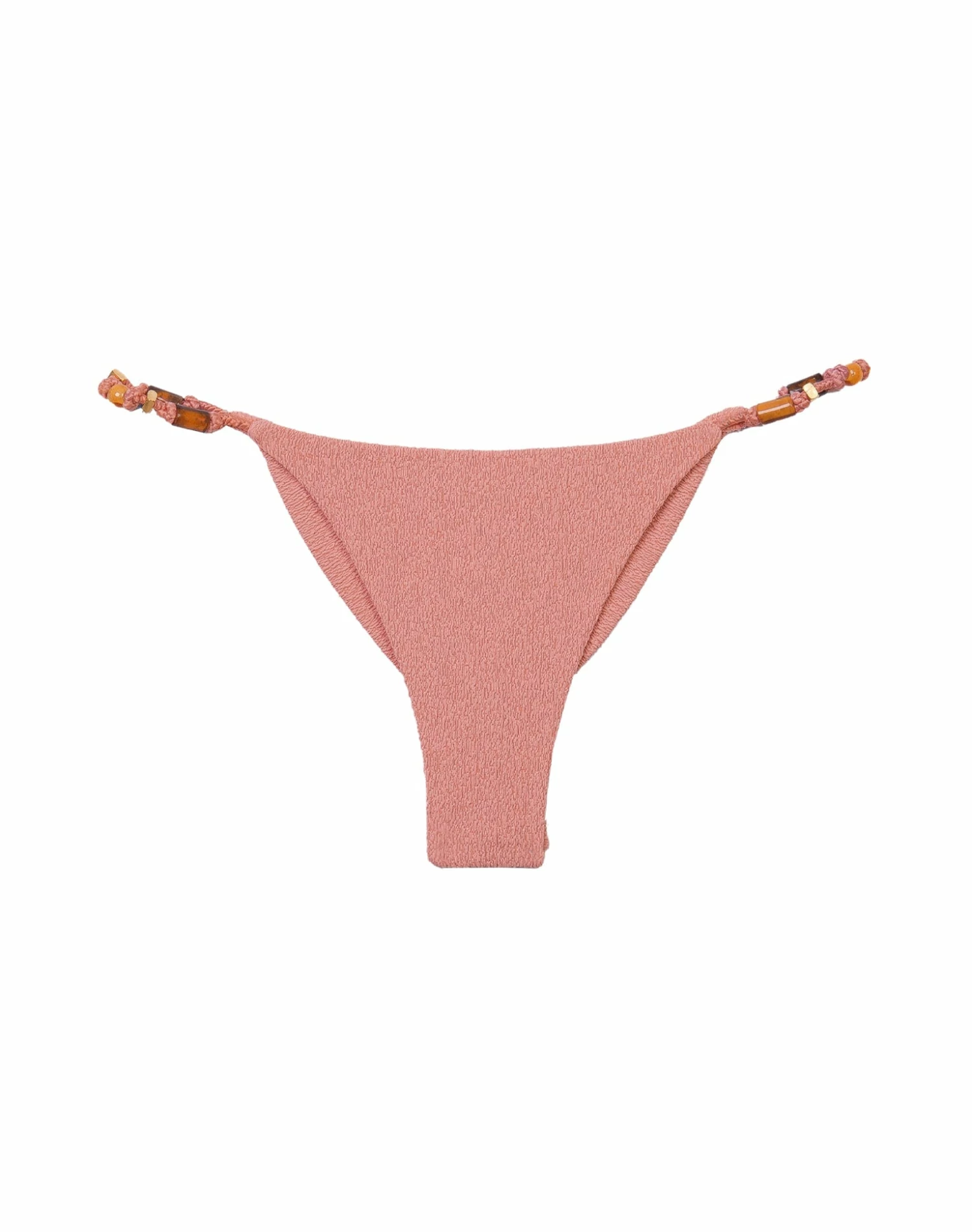 Elevate your getaway look with the right bikini. This bottom is composed of hand-crafted stretchy rope-like straps with resin beads in natural and tortoise adding subtle hints of luxury and style.