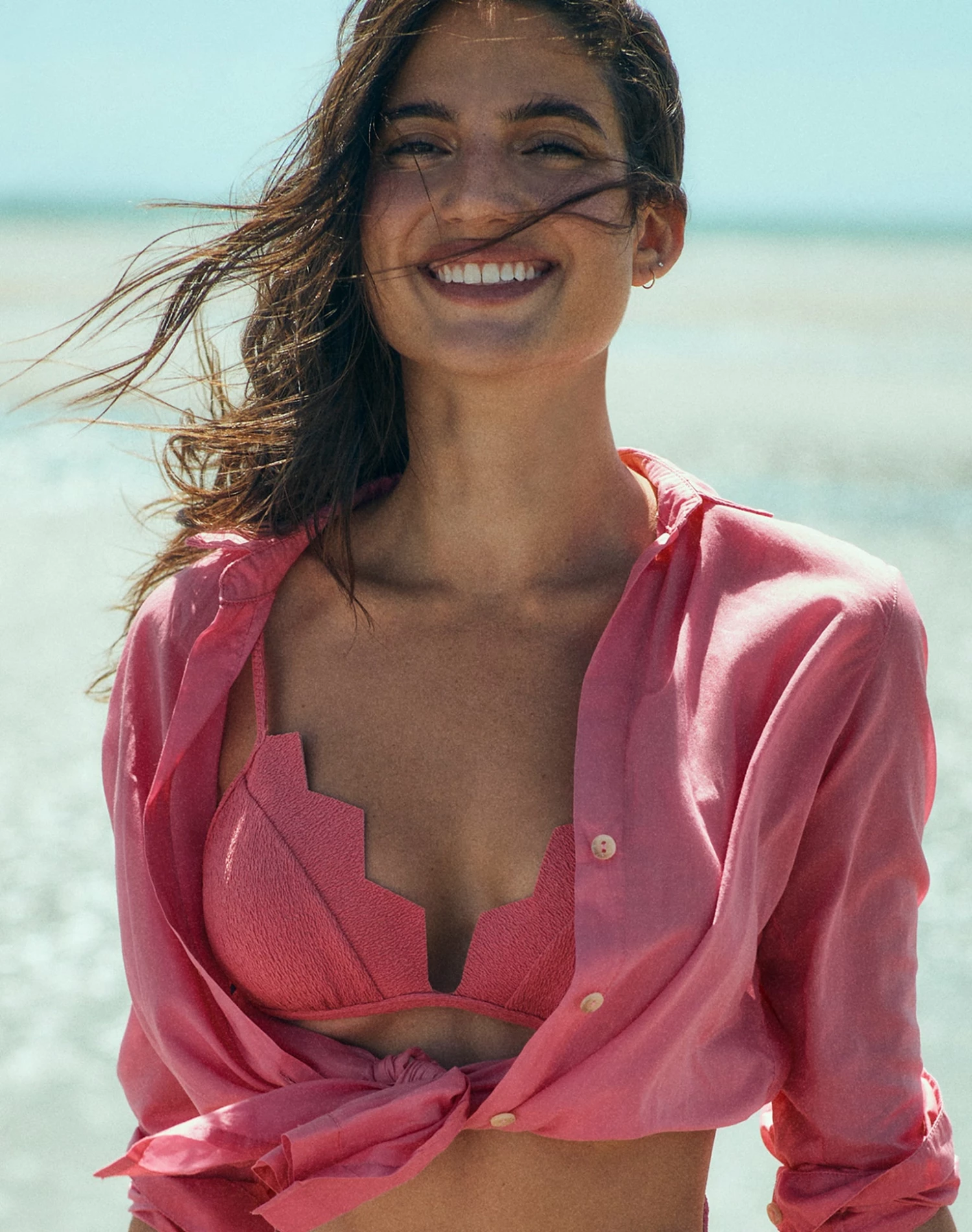 An effortless swimwear top that can be worn with matching texture bottoms for a day at the pool or pair with the Imani Midi skirt, a blazer, and stilettos for a happy hour look.