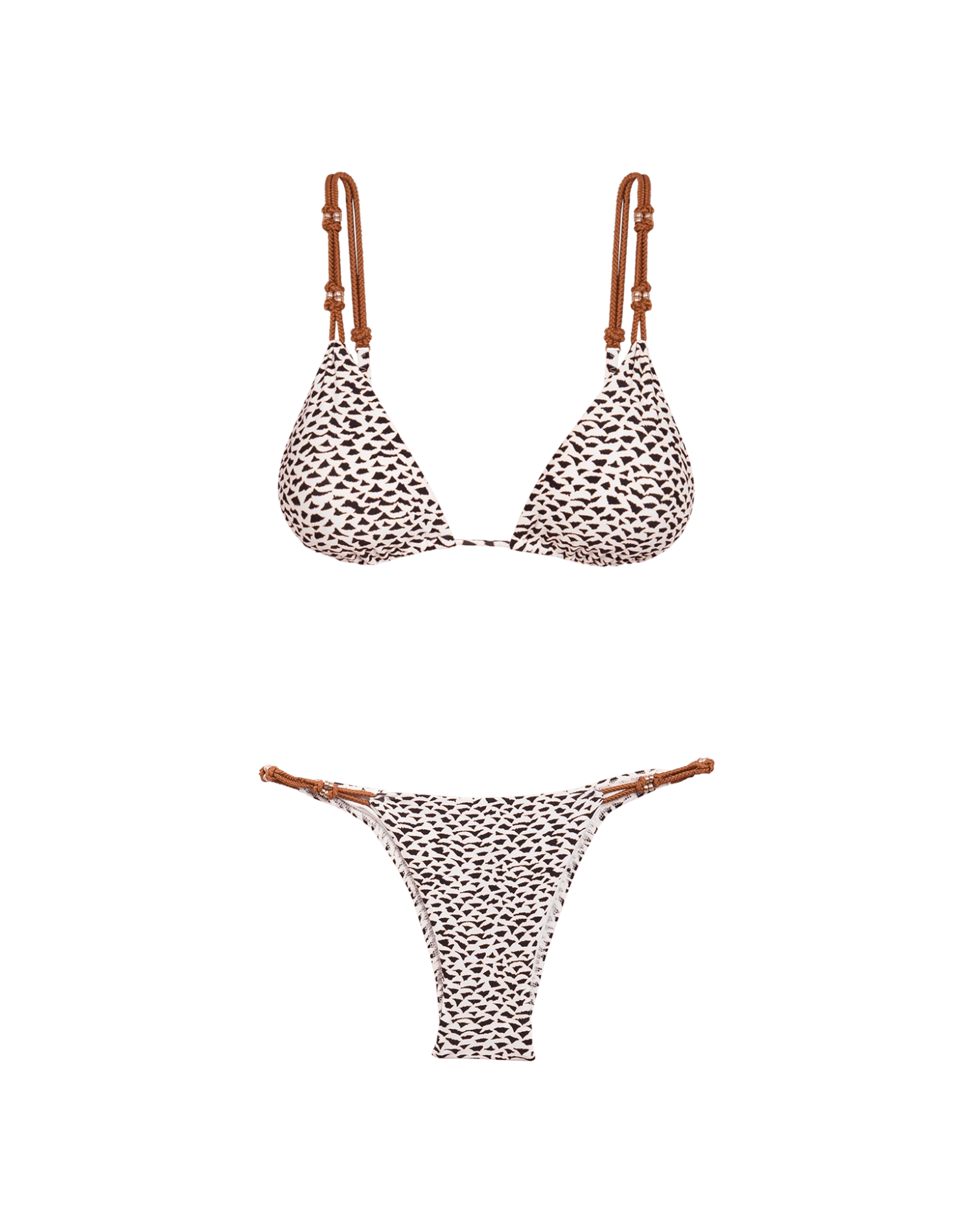 Traditional triangle top with unique waxed rope detailing that brings a unique playful resort look.