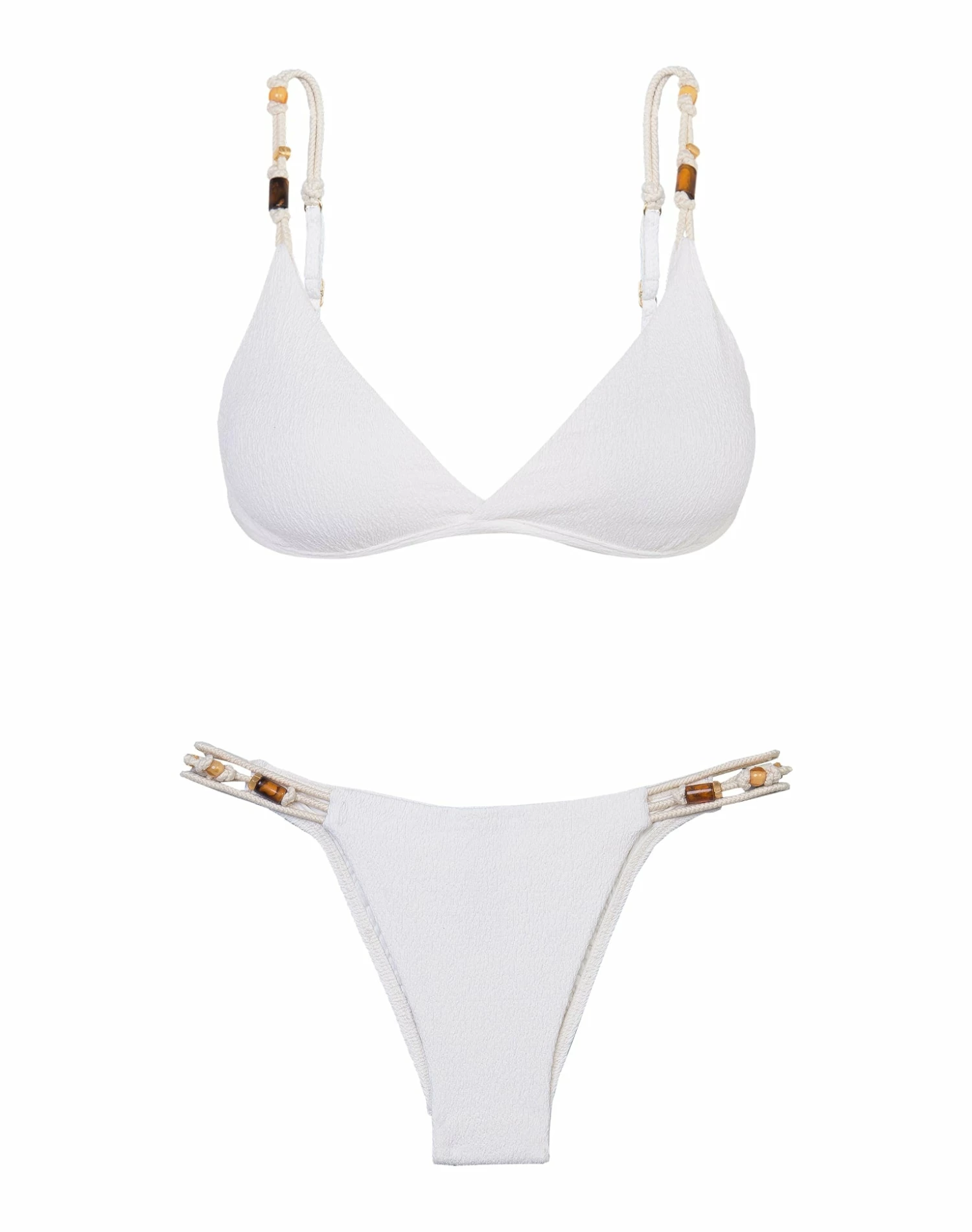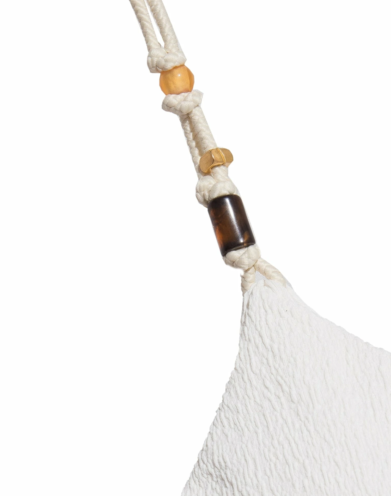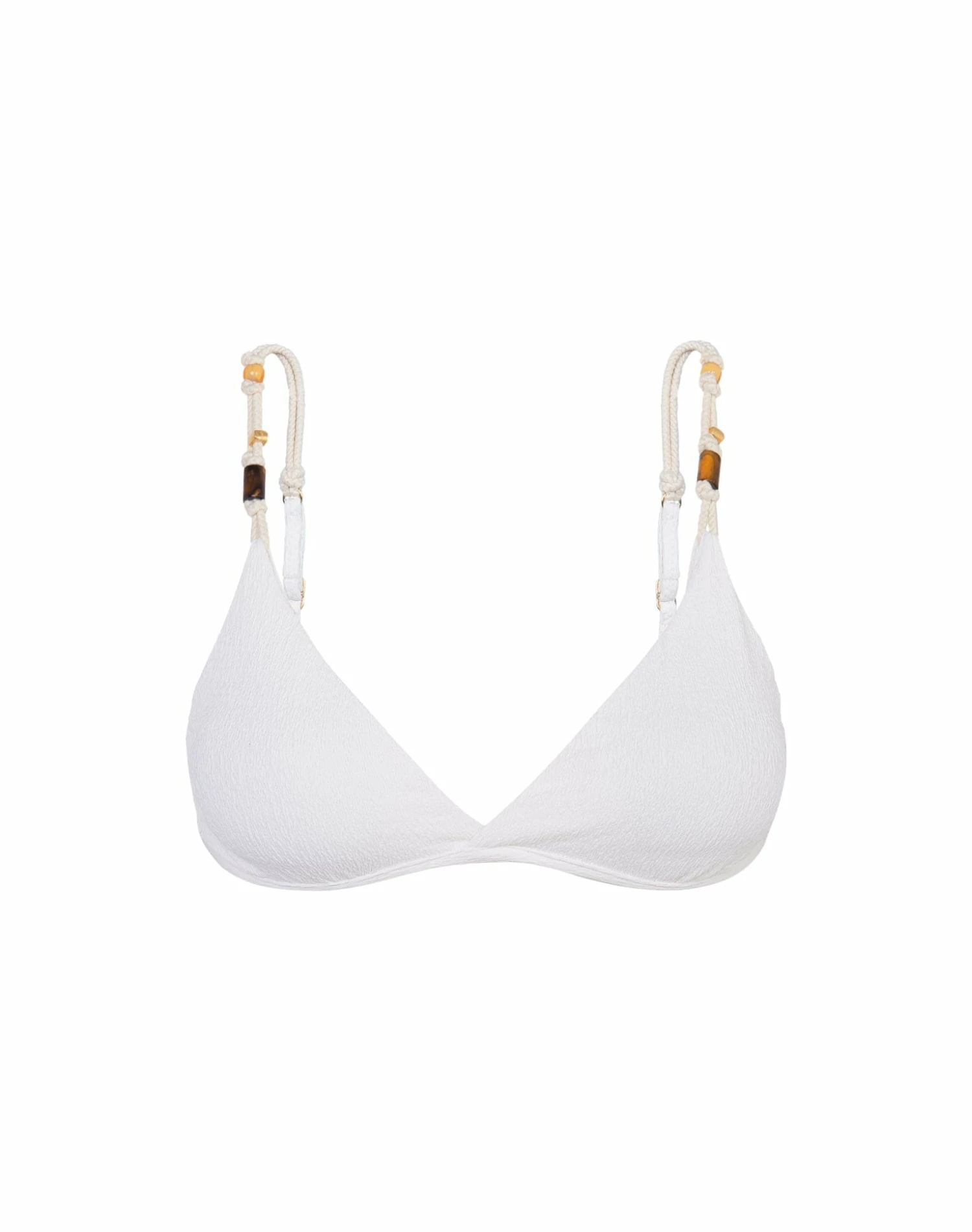 Take in the sun in true ViX fashion with the Kira Flora Top. A sophisticated bralette top adorned with stretchy rope-like straps that are carefully embellished with natural and tortoiseshell toned resin beads. An elegant ray worthy piece.