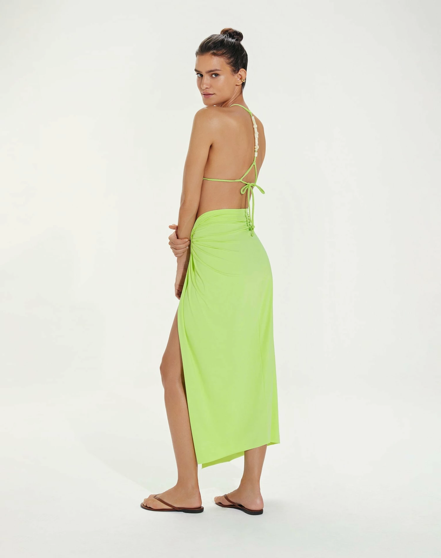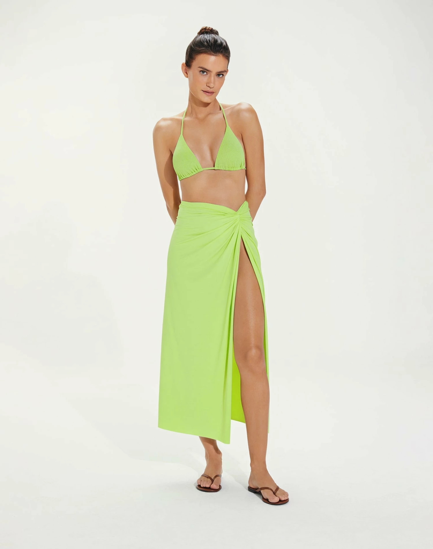 Add an extra layer of femininity to your swimwear with the Karen Midi Skirt. This sultry cover up is designed in our iconic Brazilian lycra, with a knot detail and pronounced side slit, an ideal accessory to compliment your seaside look