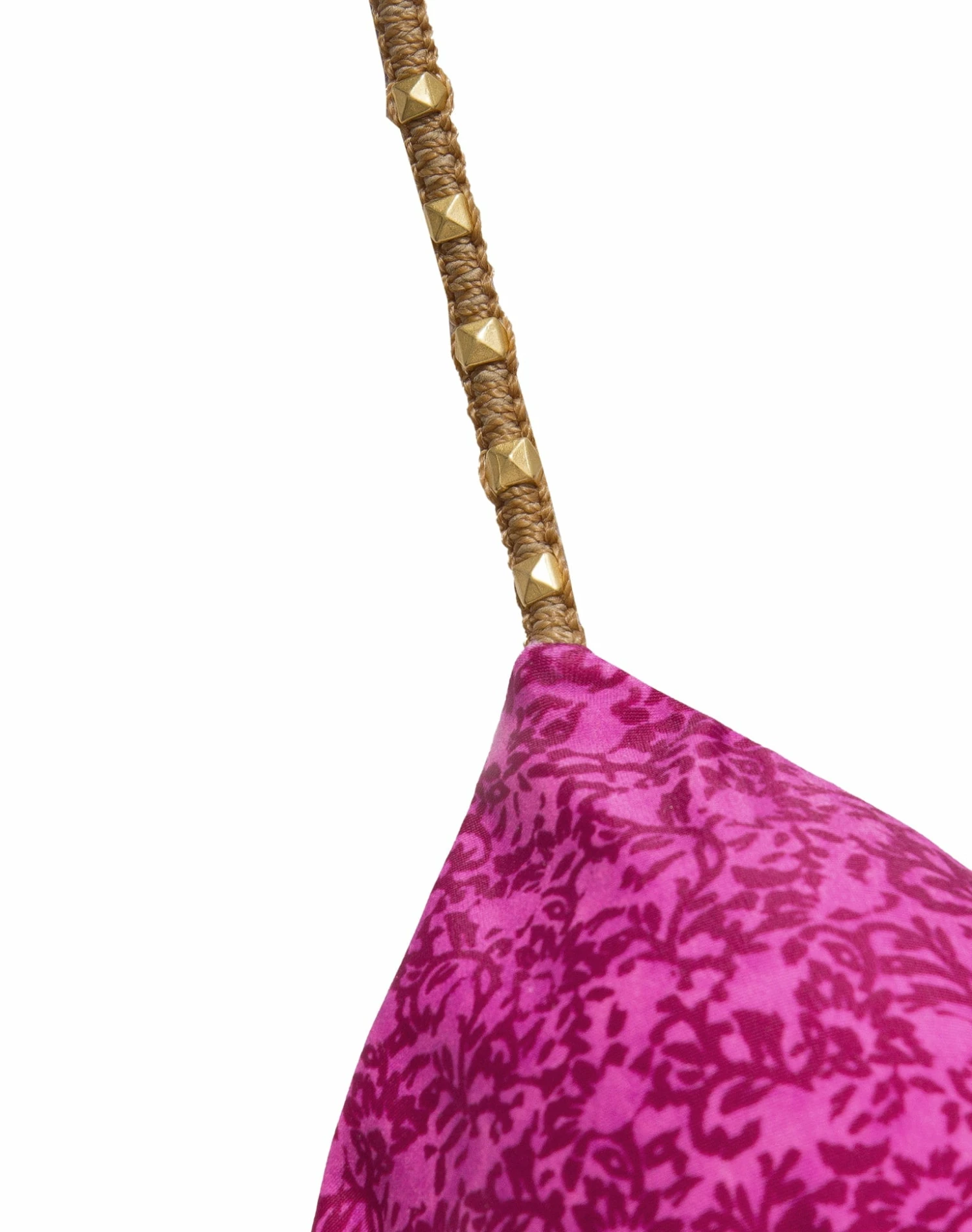 People will stare, so make it worth their while in this ageless tri top with artisanal stretchy rope-like cord straps embellished with 24k gold square studs.