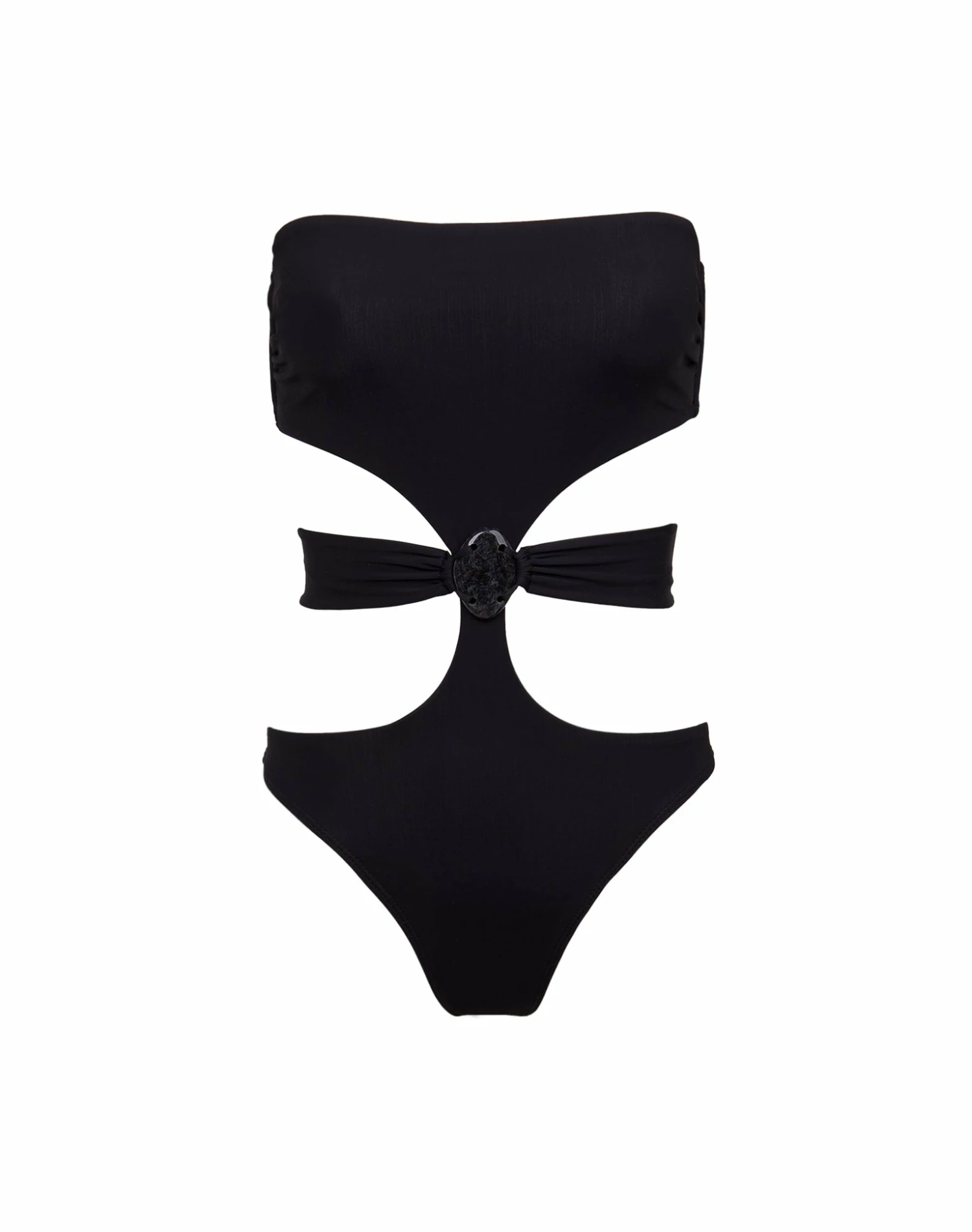 A fiery addition to your swimwear collection, the Kim One Piece will bring out your undeniable fashion sense. Crafted in our beautiful Brazilian lycra, this alluring silhouette was made for you to flaunt your figure with sexy yet sophisticated waist cut-outs and an oversized resin charm that is sure to become a poolside favorite on all your getaways.