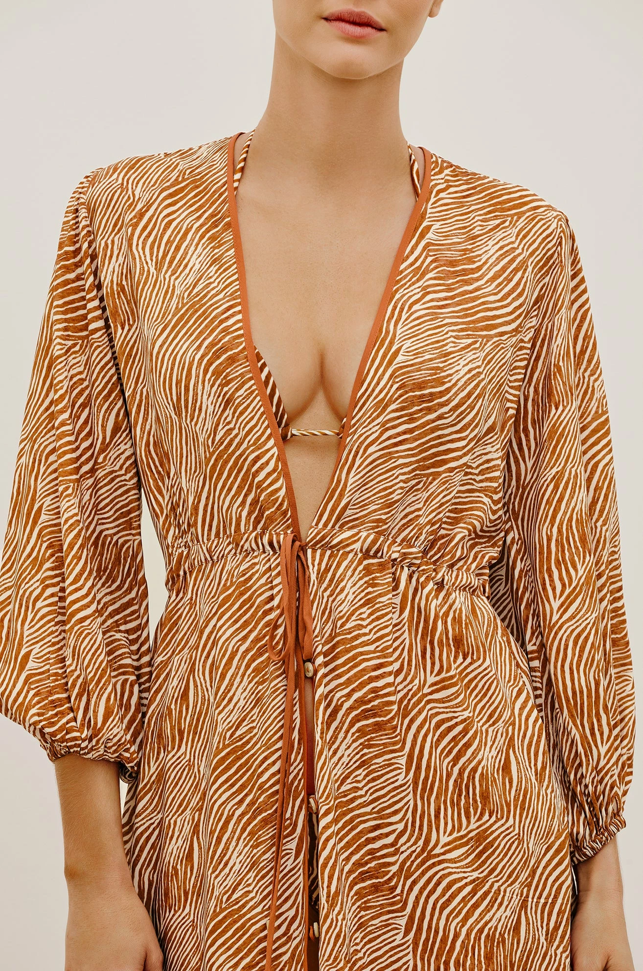 Match with same print swim pieces or wear as a kimono over white pants and cami for a bold day outfit.