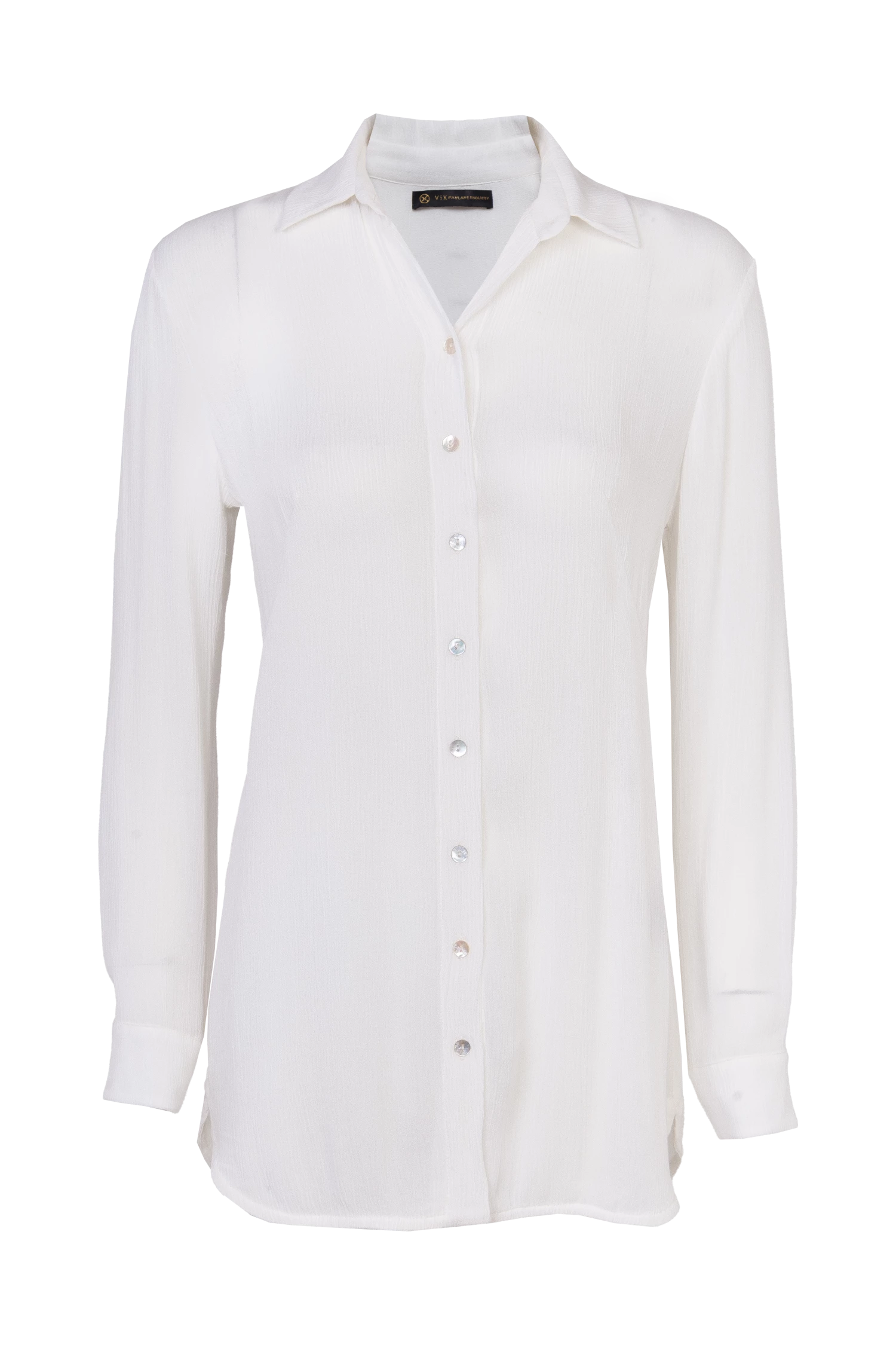 The effortlessly chic cover up that can be thrown over your bikini and transform into the evening as a blouse with trousers. Roll up the sleeves for a casual look.