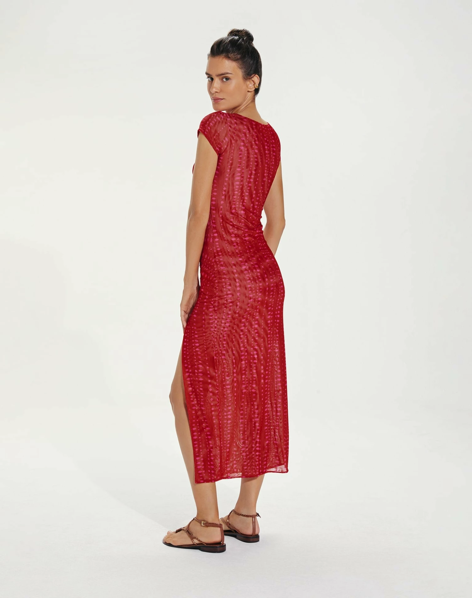 A throw-on-and-go, a curve-enhancing midi dress designed in a flattering mesh fabric for a stylish put-together look.